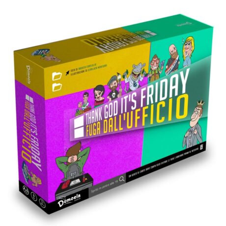 “Thank God It’s Friday – Fuga dall’ufficio”: con un mix di umorismo, inglesismi, luoghi comuni e situazioni realistiche, il gioco mira a creare un mood spassoso per divertirsi e sfidare colleghi, amici e famiglia. #giochi #ufficio #game #task #carte #AndreaConsiglio #Demoela